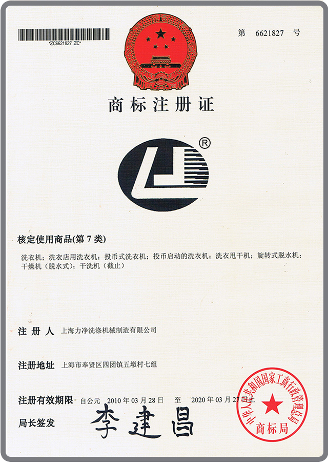 好多商家的商標都為圖形商標標識,并非都為中文商標,為維護廣大用戶和消費者權益,防止廣大客戶受到蒙蔽,誤導客戶,也為了讓廣大新老客戶買到真正上海力凈洗滌機械制造有限公司品牌的產品,希望用戶和消費者在采購時認清生產廠家及產品屬地,以免遭受經濟損失,上海力凈洗滌機械制造有限公司特此做出鄭重聲明,請認準商標標識的產品,無此商標圖形的產品均非我上海力凈洗滌機械制造有限公司生產的洗滌設備,并歡迎廣大新老客戶蒞臨我公司實地考察指導,保證每位客戶乘興而來,滿意而歸~!